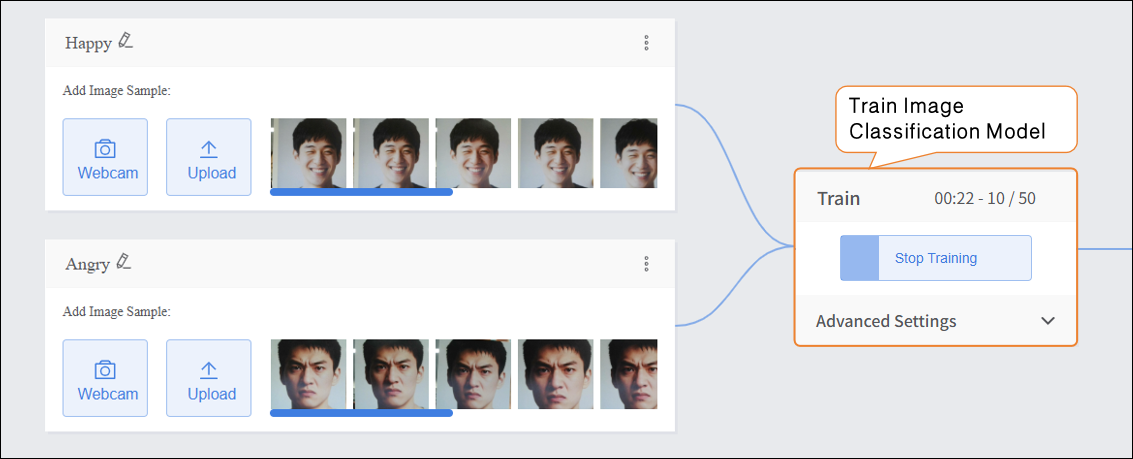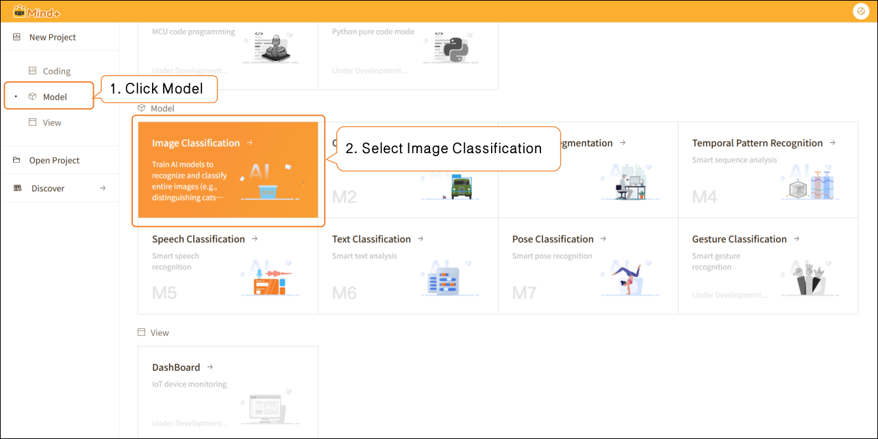The example operation uses Image Classification as a case study to demonstrate the basic workflow of Model training, helping users quickly get started.