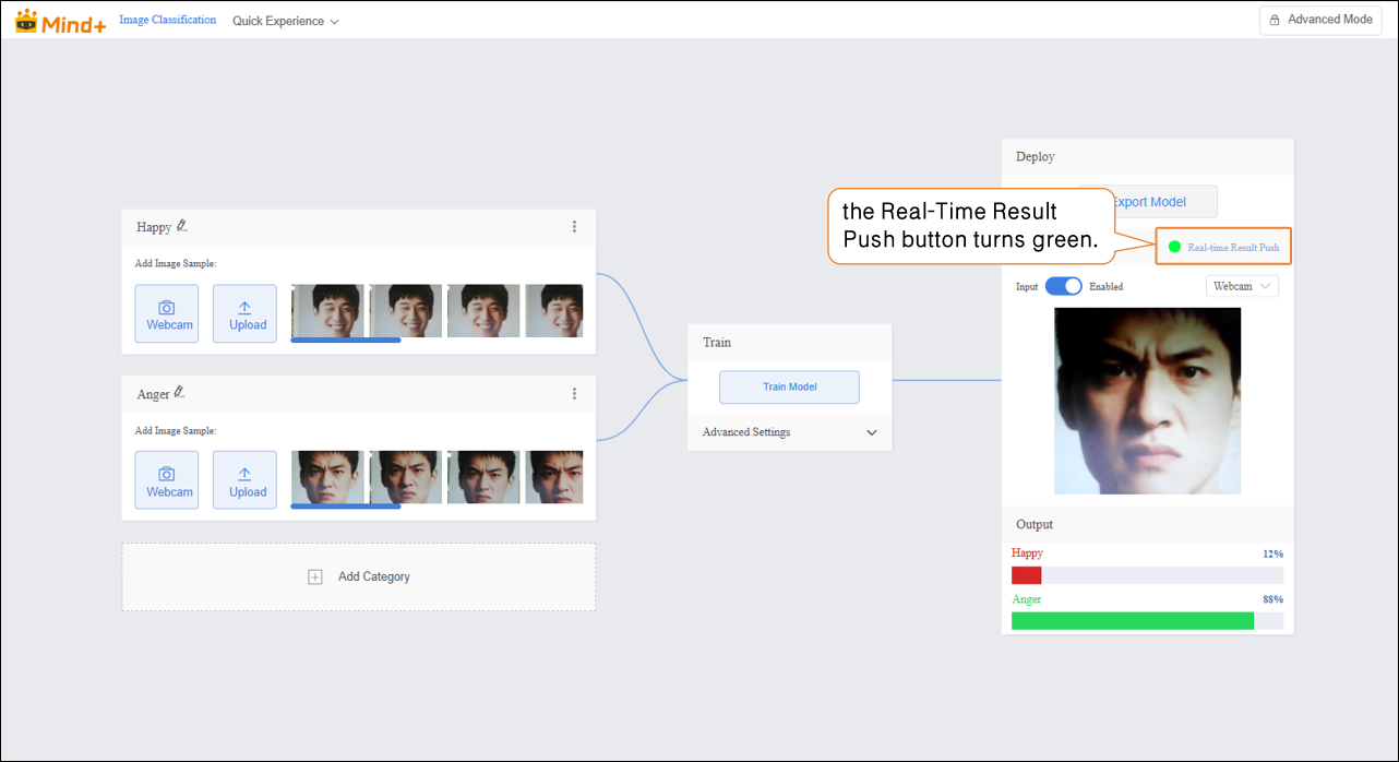 This guide focuses on demonstrating the workflow and specific steps for real-time result push of Image Classification on the UNIHIKER K10. The following operation steps are mainly for real-time result push after the model validation meets the expected results. For detailed steps on model training, please refer to the corresponding model Operation Guide.
