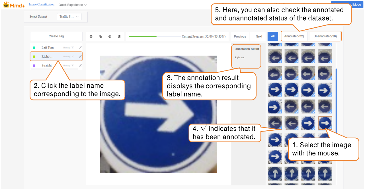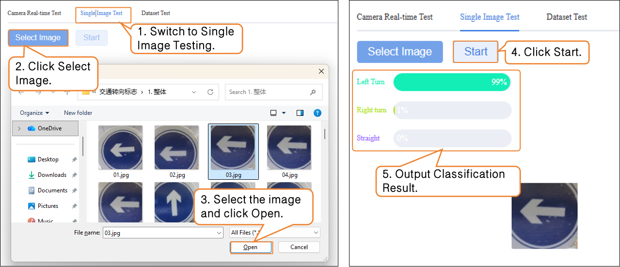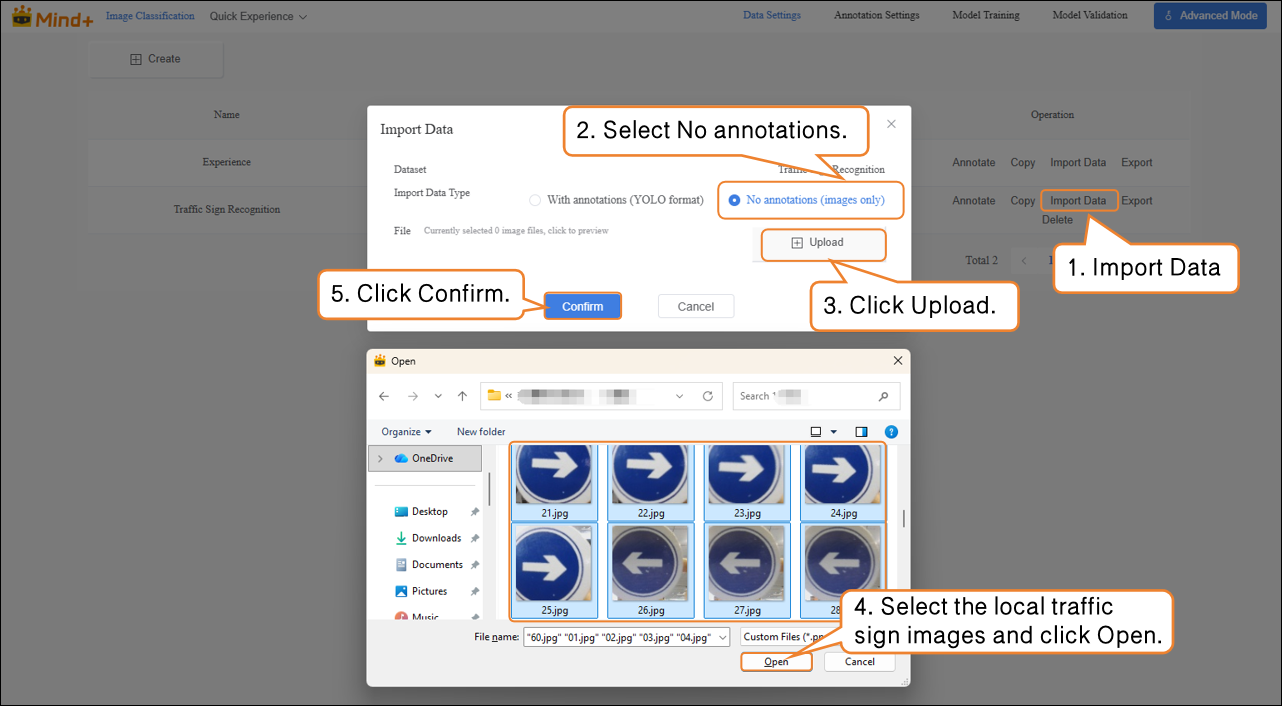 - Suitable for uploading only raw images (e.g., images containing mixed traffic signs such as straight, left turn, right turn, with at least 20 images per category).